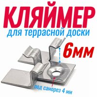 Кляймер для террасной доски дпк 6 мм – это крепежный элемент, предназначенный для скрытого монтажа террасной доски из ДПК (декинг) с образованием небольшого зазора между досками для отвода влаги и естественной вентиляции между террасными досками. Крепление террасной доски ДПК с помощью кляймера осуществляется к поперечным лагам шириной от 40 мм. Крепеж террасной доски ДПК изготавливается из нержавеющей стали, способствующей установке снаружи помещения, без образования налета и ржавчины. Кляймеры для дпк доски используют для настила поверхности балконов, террас, выставочных залов и других помещений. Особенности: • Материал: нержавеющая сталь • Высота язычка: 6 мм • Толщина: 0,8 мм • Длина: 30 мм • Ширина: 36 мм • Тип: шовный (с зазором) • Размер зазора: 5-6 мм • Для террасной доски: ДПК (декинг) • Цвет: серебристый • Диаметр самореза: 4 мм Преимущества: • Надежное крепление: обеспечивает прочное и долговечное соединение террасной доски к основанию, выдерживая значительные нагрузки. • Скрытый монтаж: невидимые