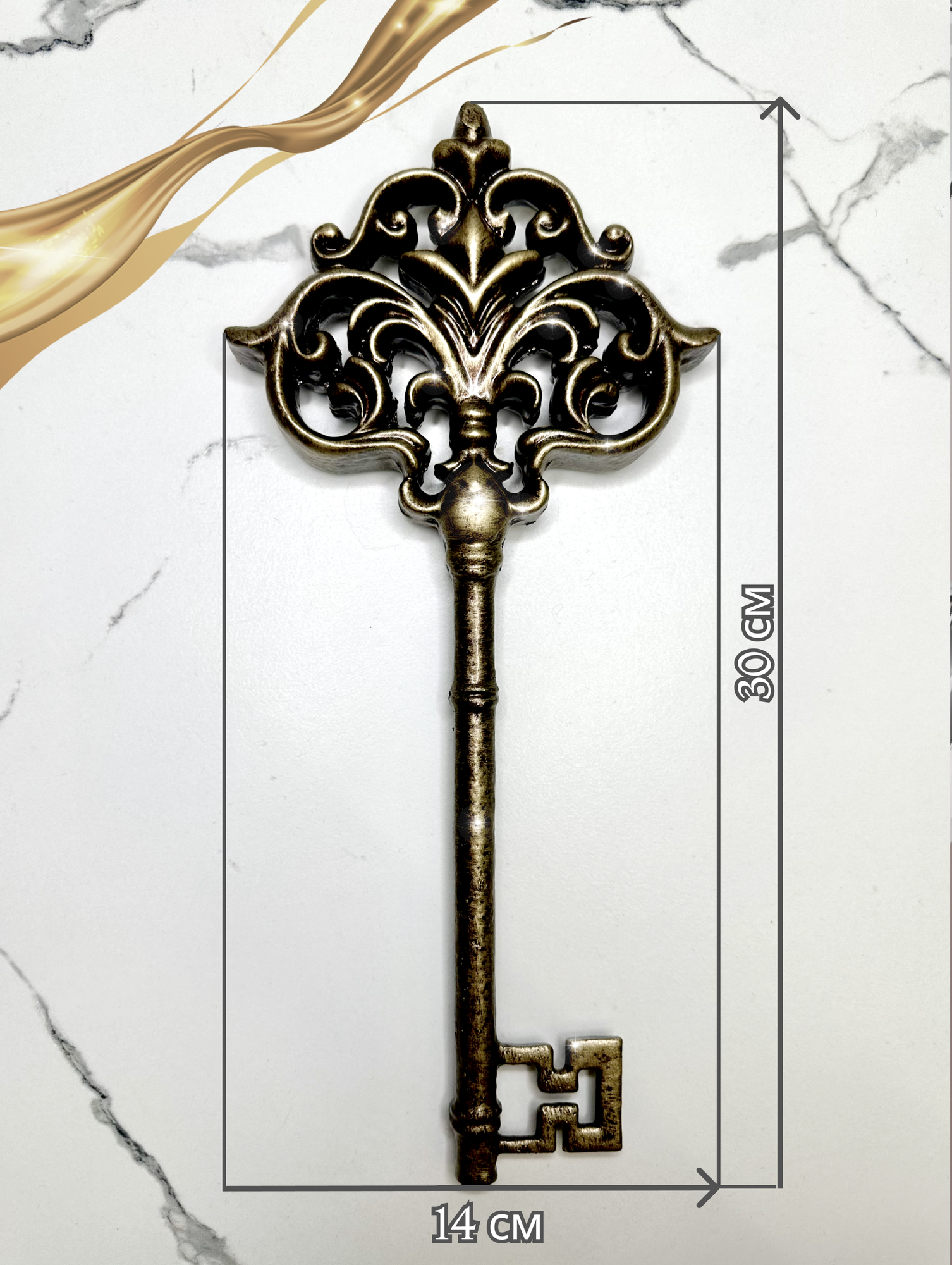 Декоративный металлический ключ создает особую атмосферу уюта и стиля, становясь заметным и благородным элементом интерьера. Этот декоративный ключ большой, что делает его особенно заметным и привлекательным.