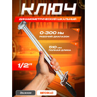 Динамометрический шкальный ключ АвтоDело 1/2", 0-300 Нм позволяет затягивать резьбовые соединения с контролируемым крутящим моментом.