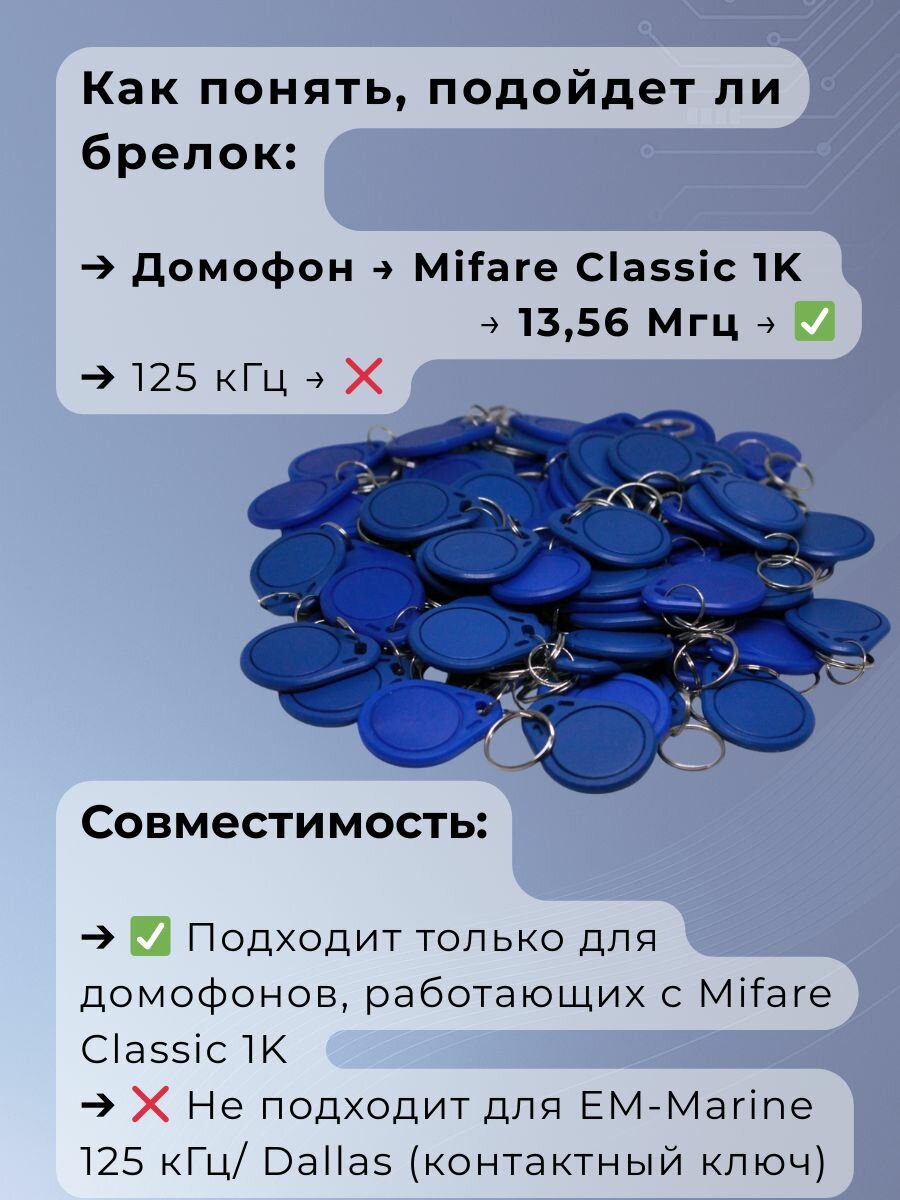 Купить Ключ для домофона Mifare Zero (100 шт) электронный перезаписываемый. Частота 13,56 МГц. Цвет синий с доставкой по всей России. Ключ для домофона Mifare Zero (100 шт) электронный перезаписываемый. Частота 13,56 МГц. Цвет синий: сравнение цен, характеристики, фото, актуальное наличие и цены.