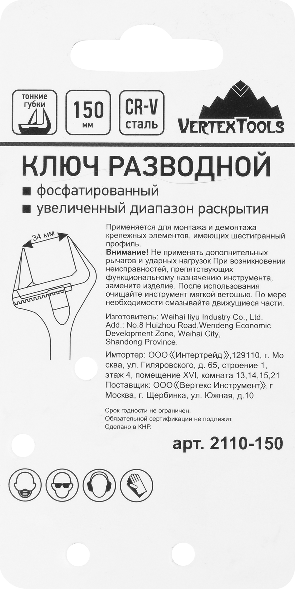 Разводной ключ VertexTools 150 мм, с тонкими губками 5 мм, ширина захвата 34 мм, двухкомпонентная рукоятка, CR-V сталь с фосфатированным покрытием, закален до твердости 50HRC - предназначен для монтажа и демонтажа крепежных элементов с шестигранным профилем. Идеально подходит для авторемонтных и сантехнических работ, обслуживания климатического и производственного оборудования.