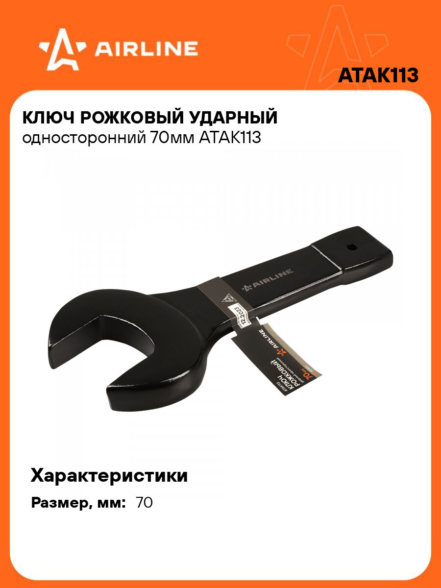 Ключ рожковый ударный 70 мм односторонний AIRLINE ATAK113 изготовлен из высококачественной хромованадиевой стали.