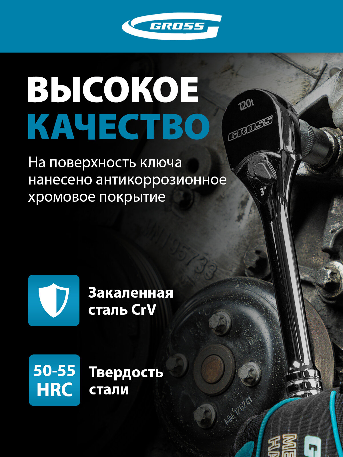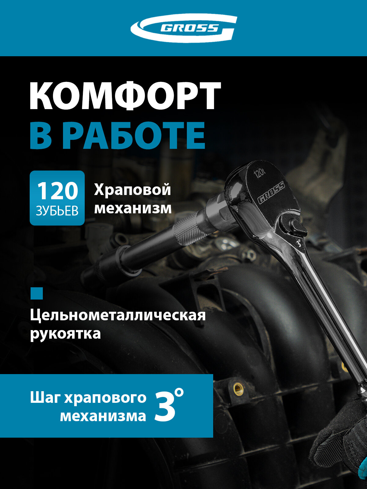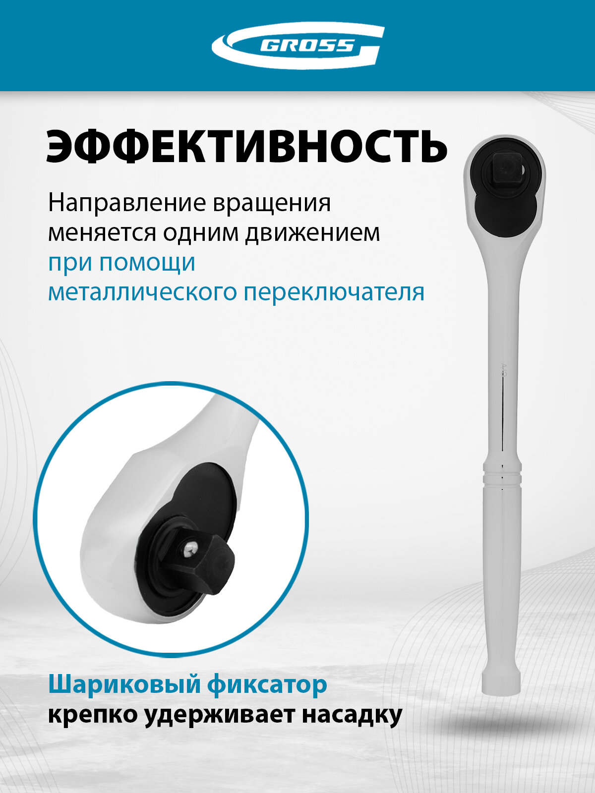 - Удобная работа — храповой механизм обеспечивает плавное вращение.