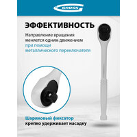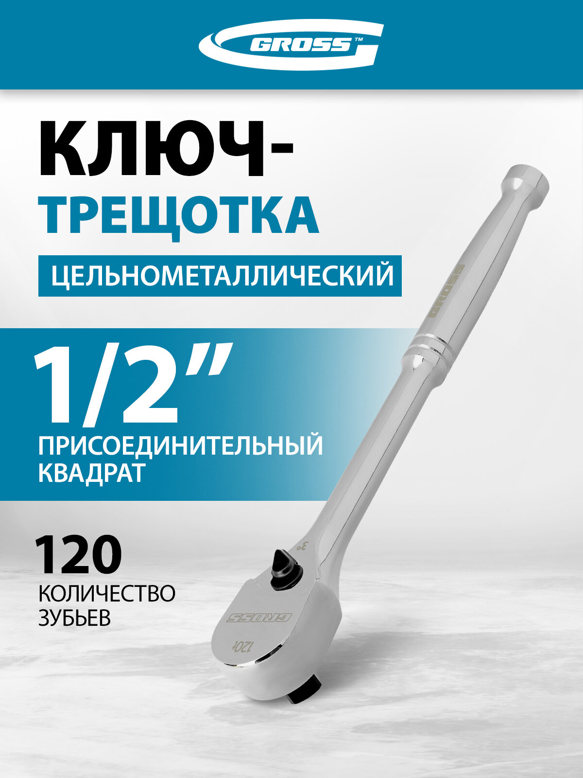 Цельнометаллический ключ-трещотка Gross 14052 с присоединительным квадратом 1/2" оснащен храповым механизмом со 120 зубьями. Предназначен для установки торцевых головок, а также адаптеров и удлинителей с посадочным отверстием соответствующего размера. Шаг храпового механизма составляет 3°, поэтому инструмент оптимален для использования в труднодоступных местах. Будет полезен в сервисном центре, на СТО, а также пригодится дома или в поездке.
