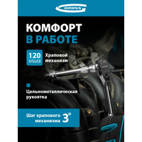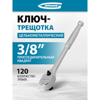 Ключ-трещотка Gross 3/8″, CrV, 120 зубьев, цельнометаллический, хром 14051