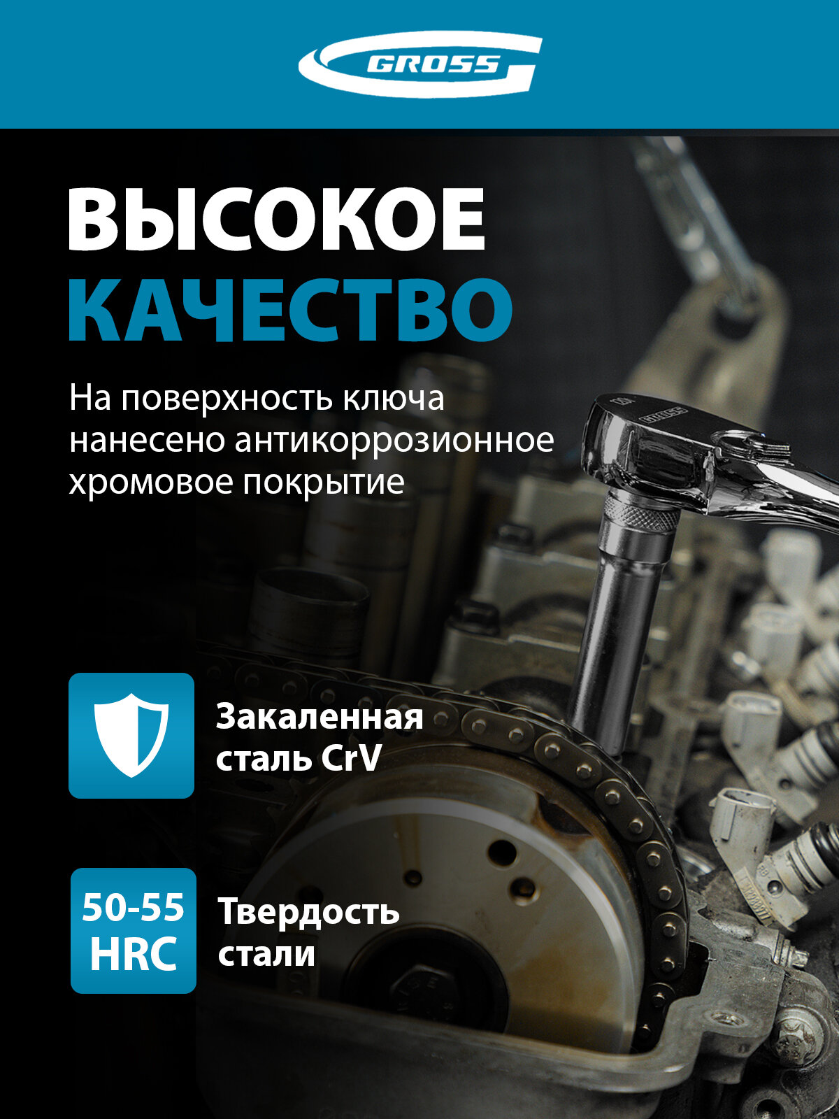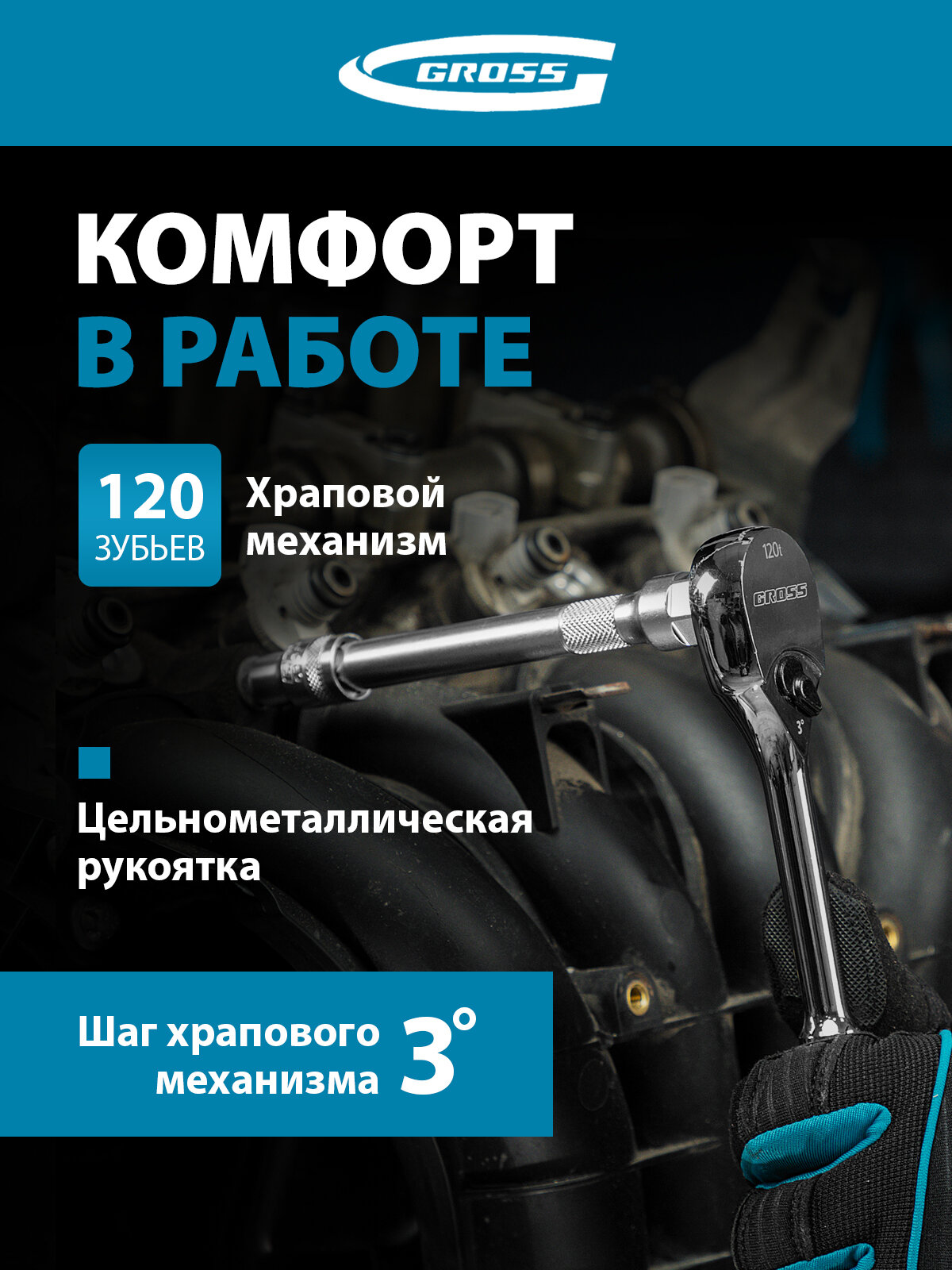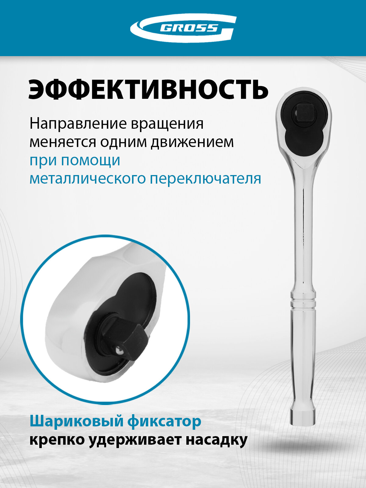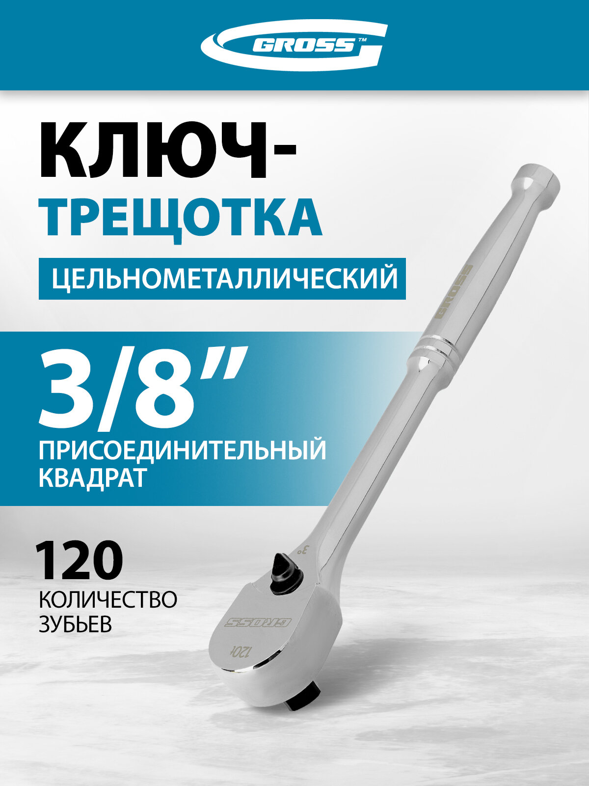 Ключ-трещотка Gross 3/8″, CrV, 120 зубьев, цельнометаллический, хром 14051: сравнение цен, характеристики, фото, актуальное наличие и цены.