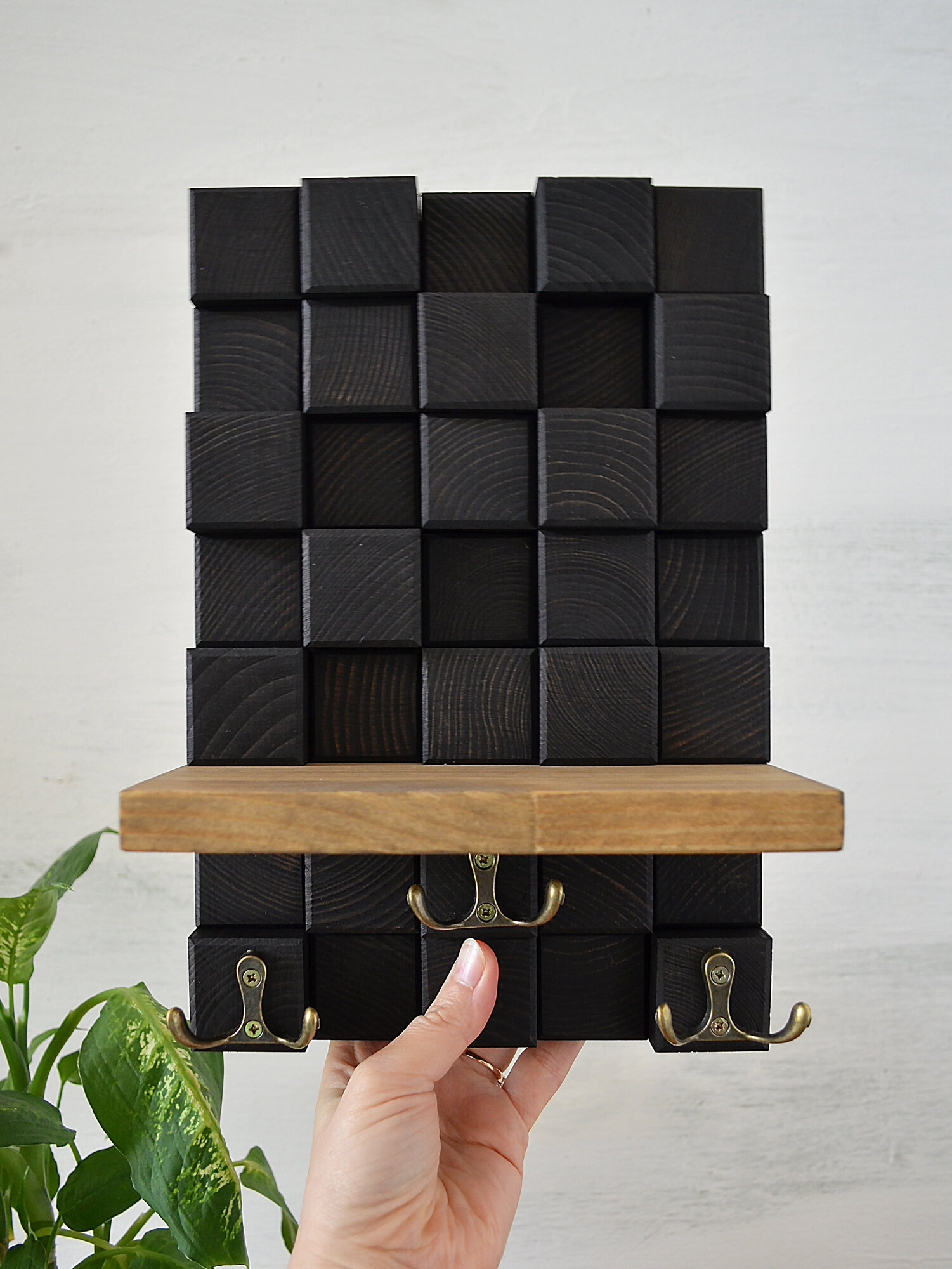 Наша ключница настенная с полкой представлена в трех цветовых сочетаниях и отлично впишется в любой современный интерьер, будь то минимализм, лофт, скандинавский, эко стиль, прованс и т. д.