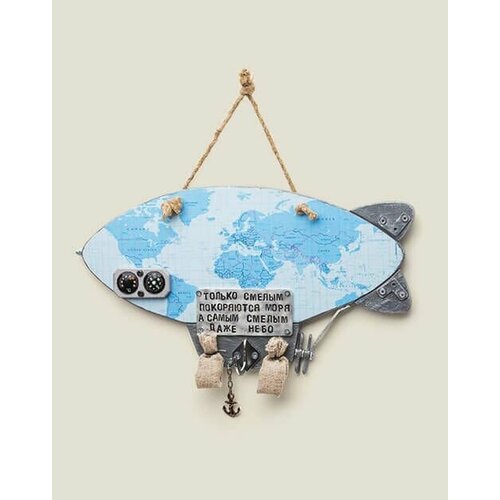Купить Ключница «Дирижабль» (DL01), Бюро находок, дерево, 25x32x4.5см, 1 ключ, голубая/белая с доставкой по всей России.
