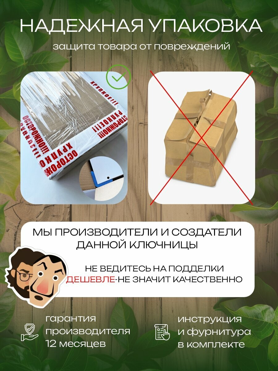 | Подробная комплектация | Ключница в разобранном виде, фурнитура в пакете, инструкция |