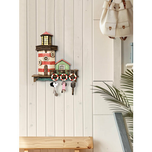 Ключница Настенная Бюро находок «Маяк» (PB33), дерево, ручная работа, 26х30х9 см: сравнение цен, характеристики, фото, актуальное наличие и цены.