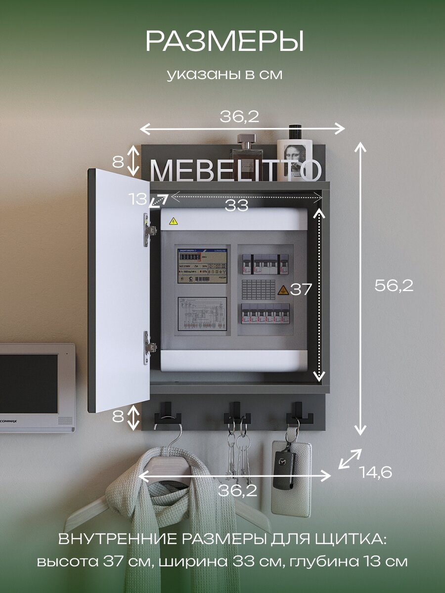 Ключница МДФ настенная в прихожую с полкой на щиток, деревянная для дома, Графит: сравнение цен, характеристики, фото, актуальное наличие и цены.