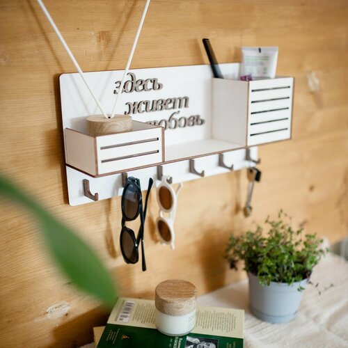 Купить Ключница настенная белая «Здесь живет любовь» Bezusoff, дерево, 6 крюков, 38×18,5х10 см с доставкой по всей России. Ключница настенная белая «Здесь живет любовь» Bezusoff, дерево, 6 крюков, 38×18,5х10 см: сравнение цен, характеристики, фото, актуальное наличие и цены.