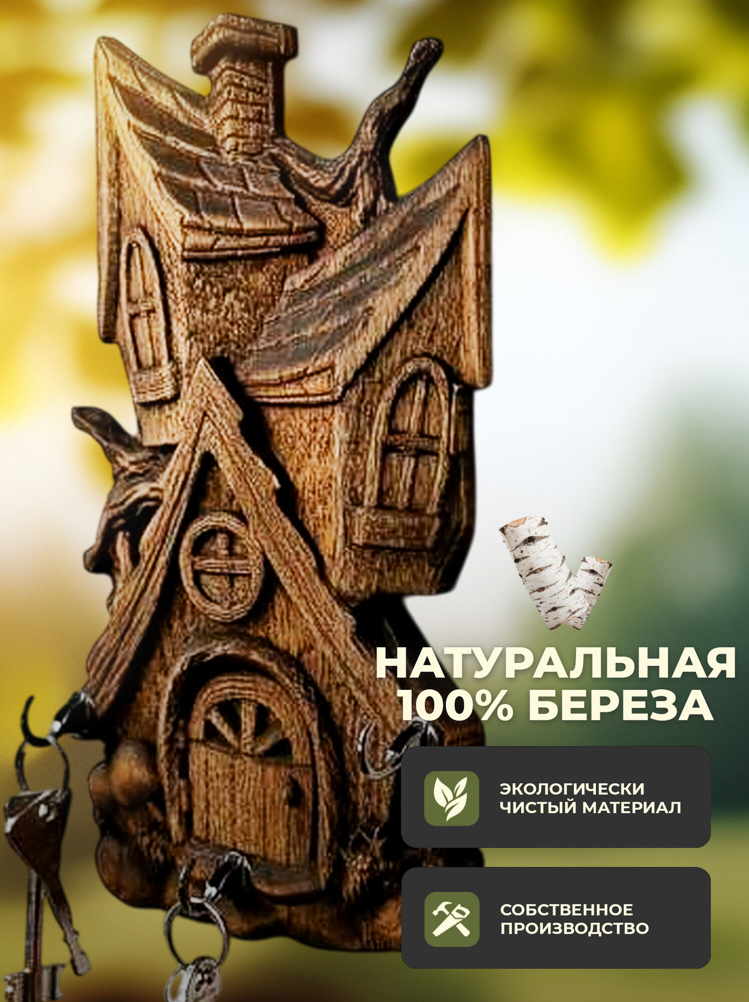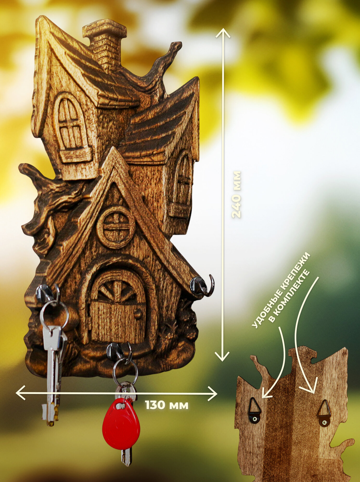 Ключница настенная деревянная «Теремок» 3 в 1 — органайзер для прихожей, дома и дачи.