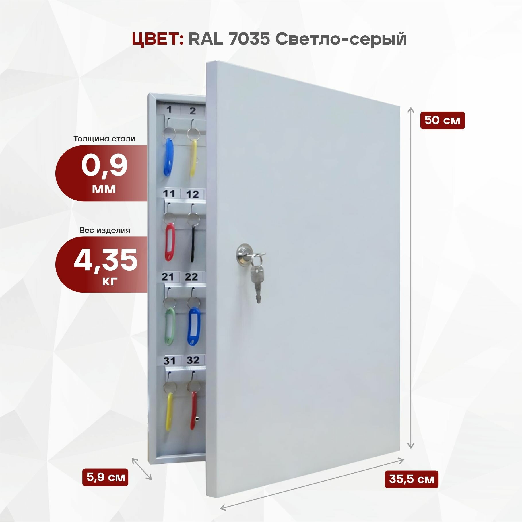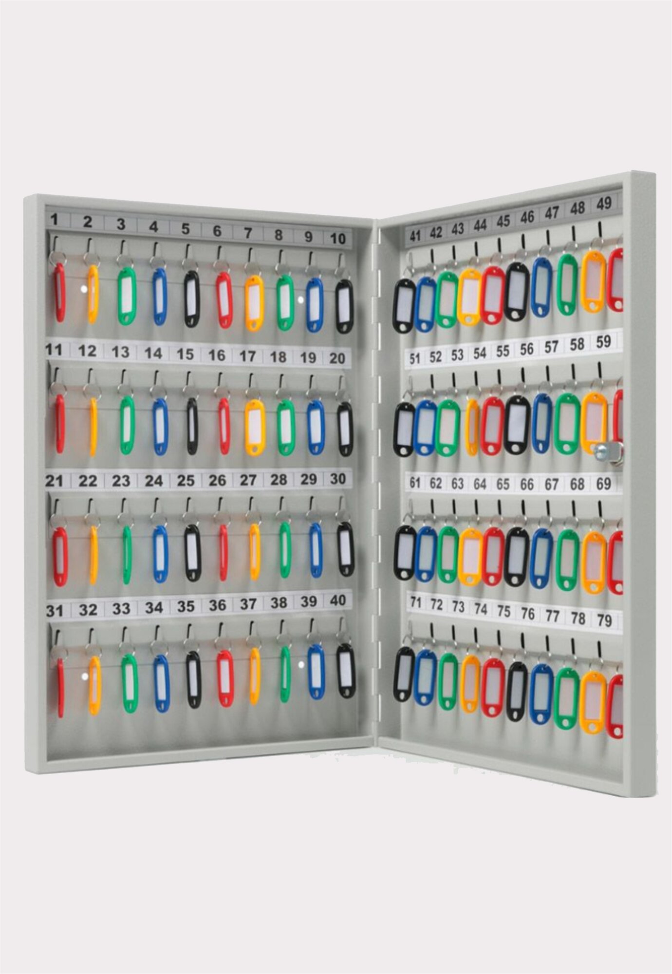 Ключница КЛ 80 с брелками производится на заводе "Рубин", который вот уже более 19 лет занимается производством изделий из углеродистой стали. Все линейка производимой продукции выпускается под зарекомендовавшим себя брендом DALLER. Металлическая настенная ключница изготовлена из стали 0,9мм. Настенная ключница устанавливается через отверстия для крепления(крепеж идет в комплекте). Ключница оснащена надежным ключевым замком, крючками для вешания ключей, а так же брелоками из пластика в количестве 80 штук и самоклеющимися номерками. Ключница на стену с брелками прочный и надежный вариант как для частного использования так и для организаций с большим количеством помещений таких как гостиница, хостел, отель, офисный центр, общежитие, больница, школа, общеобразовательное учреждение, везде, где есть необходимость хранения большого количества ключей под надежной защитой. Ключницу-шкаф металлическую можно использовать, как сейф-ключницу. Сейф для ключей обеспечит надежную сохранность любому содержимому, благодаря встроенному флажковому замку. Настенный шкаф для ключей простой в монтаже, может крепиться к стене из любого материала, для его установки потребуется 10 минут времени и дрель. Прочная, порошковая покраска серого полуматового цвета (RAL 7038) закрытого шкафчика для ключей на долгие годы сохранит внешний вид изделия. Закрытый шкаф позволяет осуществлять контроль за взятием и возвратом ключей. Все ключи в одном месте! Покупая у нас, Вы покупаете у прямого производителя!