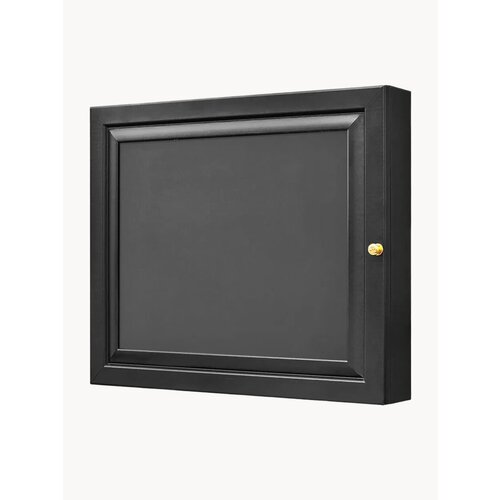 Эта ключница, изготовленная из дерева и МДФ, представляет собой объемную шкатулку, которую можно повесить на стену. Она прекрасно впишется в интерьер прихожей, офиса или дачи. Закрытый тип ключницы оснащен 8 металлическими крючками, а для крепления предусмотрены гвозди. Рама выполнена в черном цвете, что позволяет использовать её как шкатулку для бижутерии.