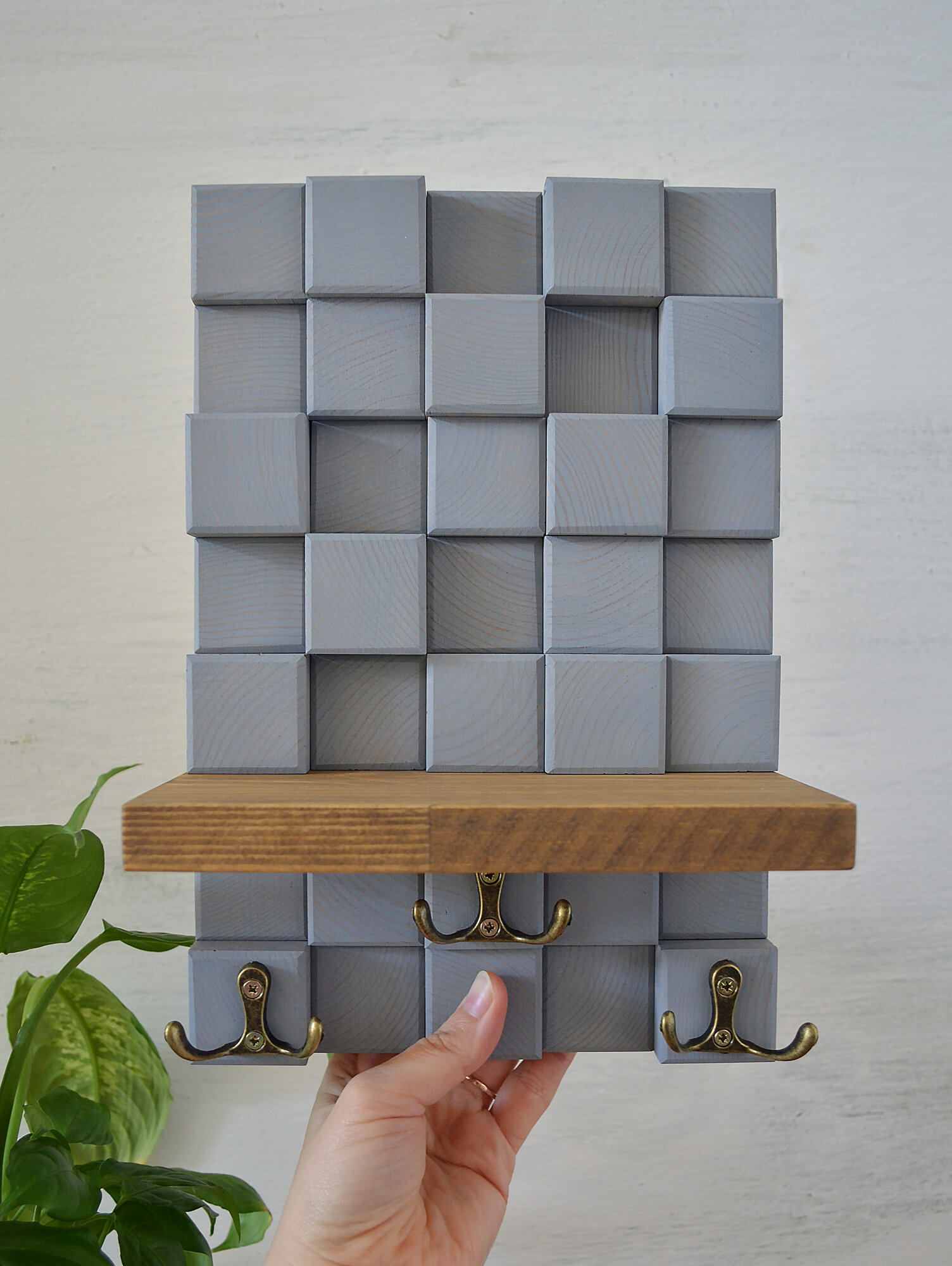 Наша ключница настенная с полкой представлена в трех цветовых сочетаниях и отлично впишется в любой современный интерьер, будь то минимализм, лофт, скандинавский, эко стиль, прованс и т. д.