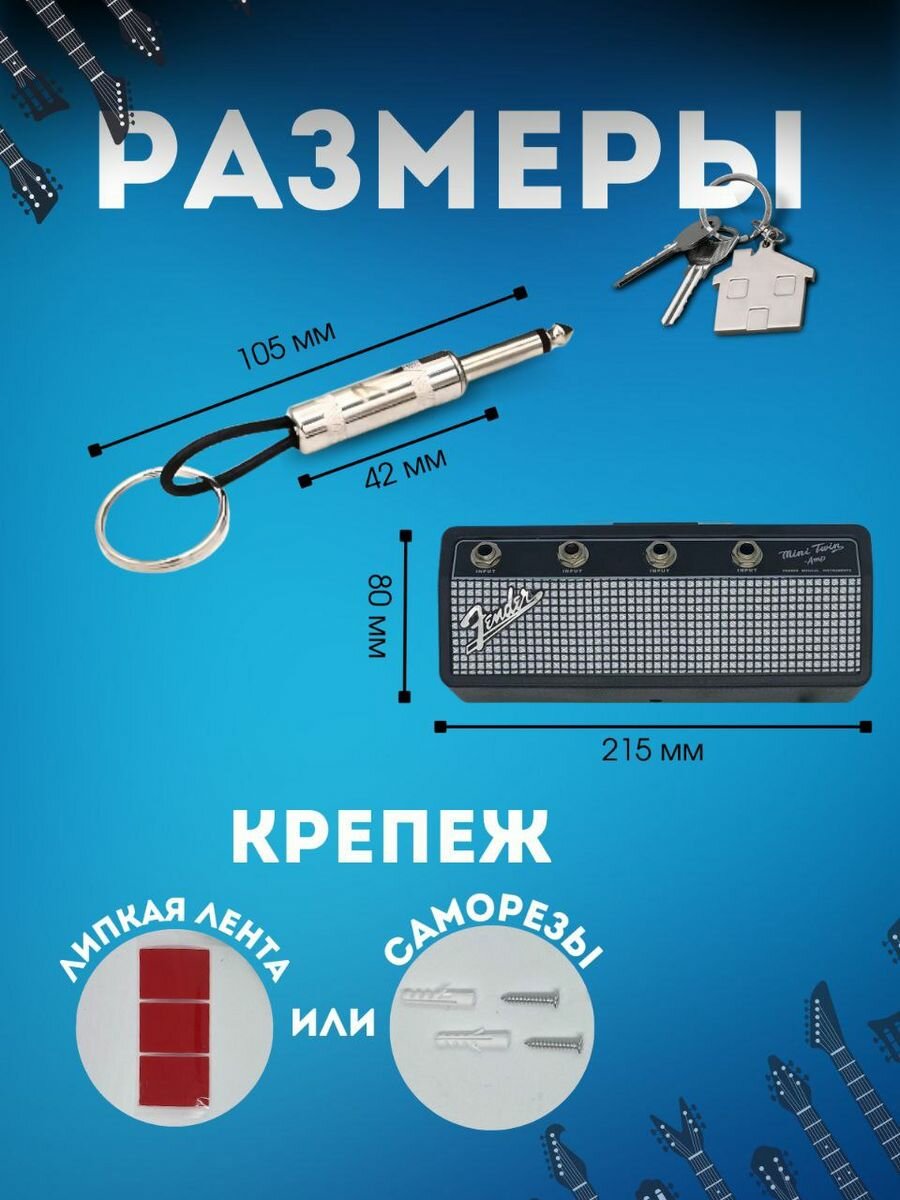 Представляем новинку - ключницу настенную в прихожую дизайна брендов Marshall JCM800 или Fender. Это полезный сувенир, ставший находкой для многих семей обеспечит надёжное хранение ключей всех членов семьи. Крепится настенный декор для коридора на саморезы которые идут в комплекте, либо на двухсторонний скотч. Наша ключница - подвесной органайзер с брелками в виде аудио коннектора Jack 6.35мм позволит вам организовать местоположение ключей с исключительным стилем. Комплект включает 4 брелока, которые идеально впишутся в гнезда jack 6mm. Ящик для ключей настенный не только предоставляет удобное нахождение для ваших ключей, но и служит прекрасным сувениром, который добавит характер вашему интерьеру, будь вы гитаристом или музыкантом, эта ключница с брелками на стену будет отличным подарком на Новый год 2024 , 23 февраля, день рождения для вас или ваших близких: мужа, друга, любимой женщины.