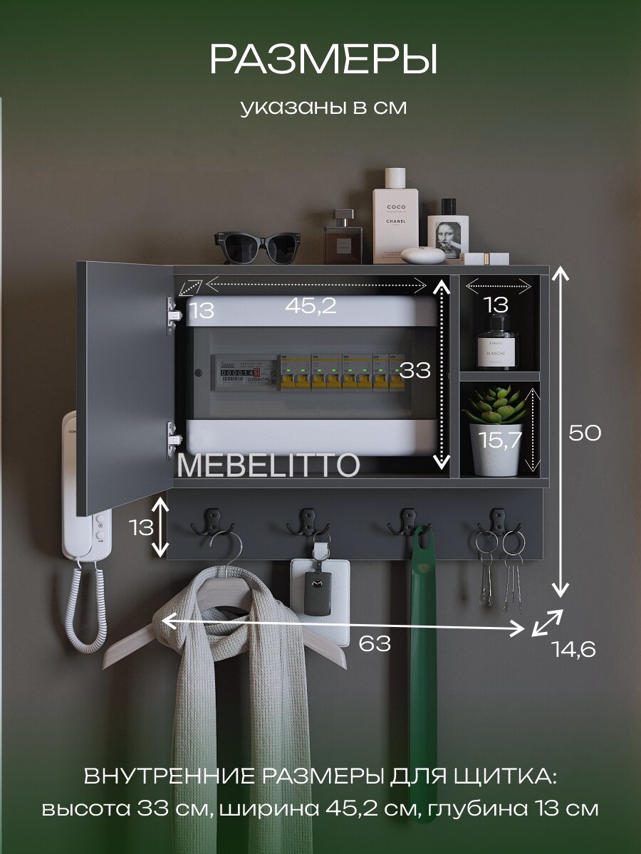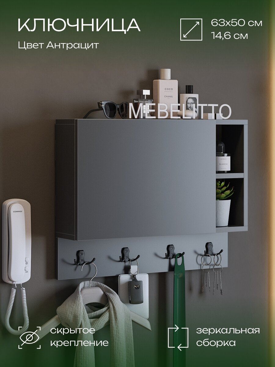 Ключница настенная в прихожую с полкой на щиток, деревянная для дома, Антрацит: сравнение цен, характеристики, фото, актуальное наличие и цены.
