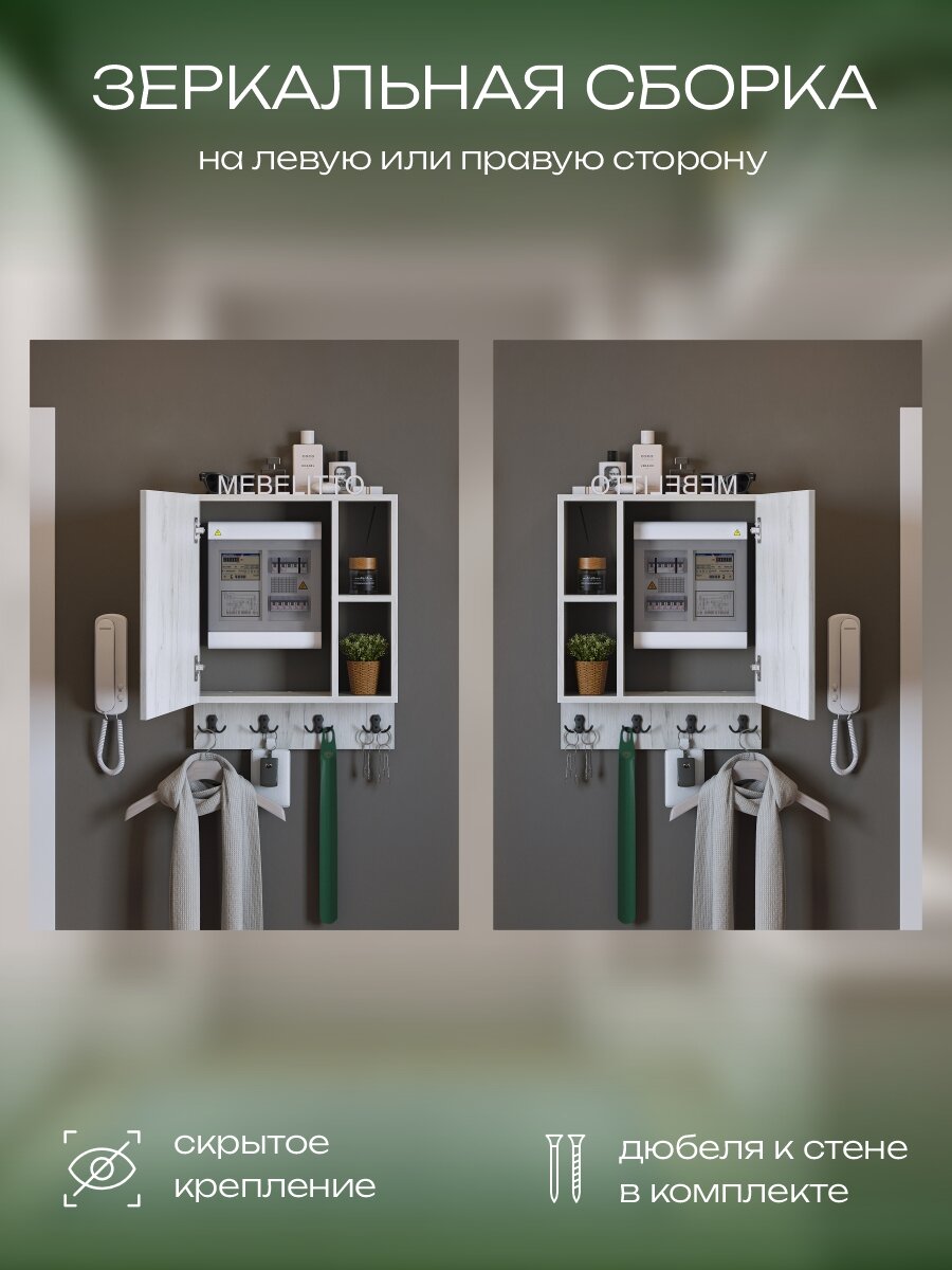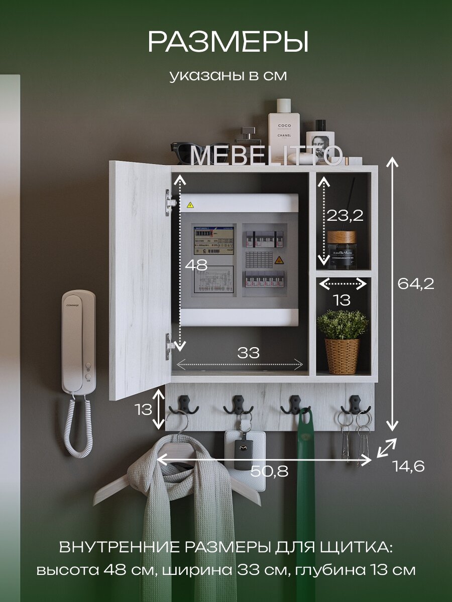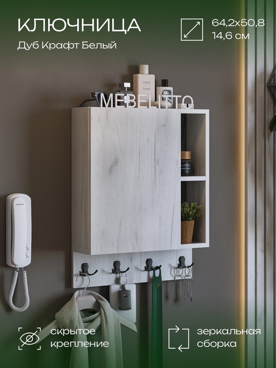 Ключница настенная в прихожую с полкой на щиток, деревянная для дома, Дуб крафт белый: сравнение цен, характеристики, фото, актуальное наличие и цены.