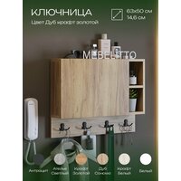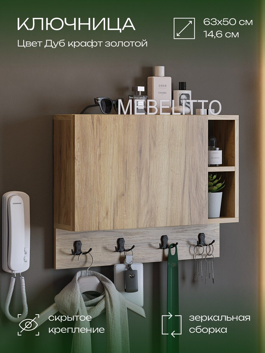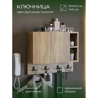 Ключница настенная в прихожую с полкой на щиток, деревянная для дома, Дуб крафт золотой: сравнение цен, характеристики, фото, актуальное наличие и цены.