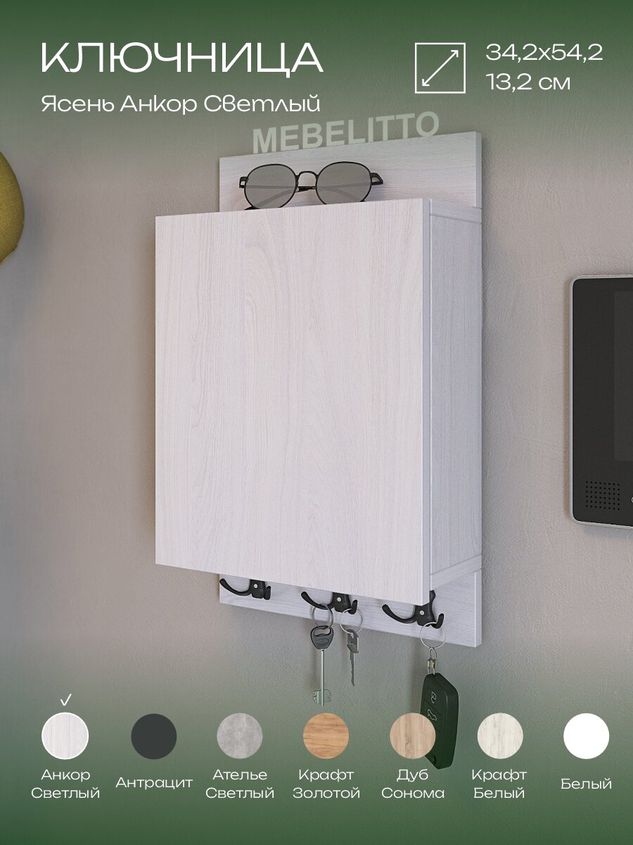 Ключница «Осло» настенная в прихожую деревянная на щиток Ясень Анкор Светлый: сравнение цен, характеристики, фото, актуальное наличие и цены.