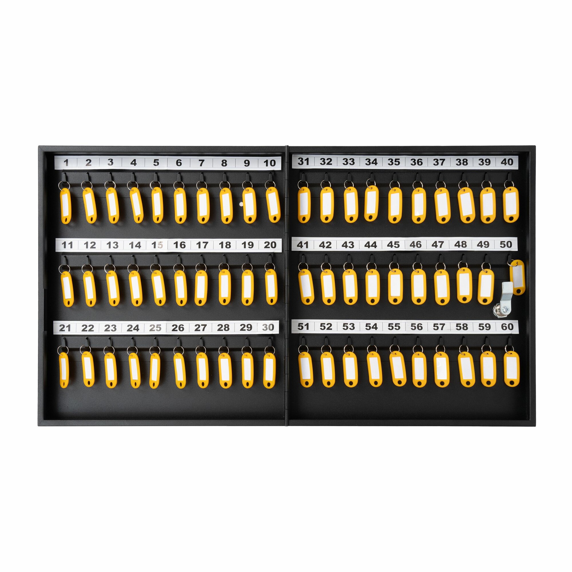 Купить Ключница (шкаф-ящик для ключей) настенная металлическая черная КЛ 60 с брелками с доставкой по всей России.
