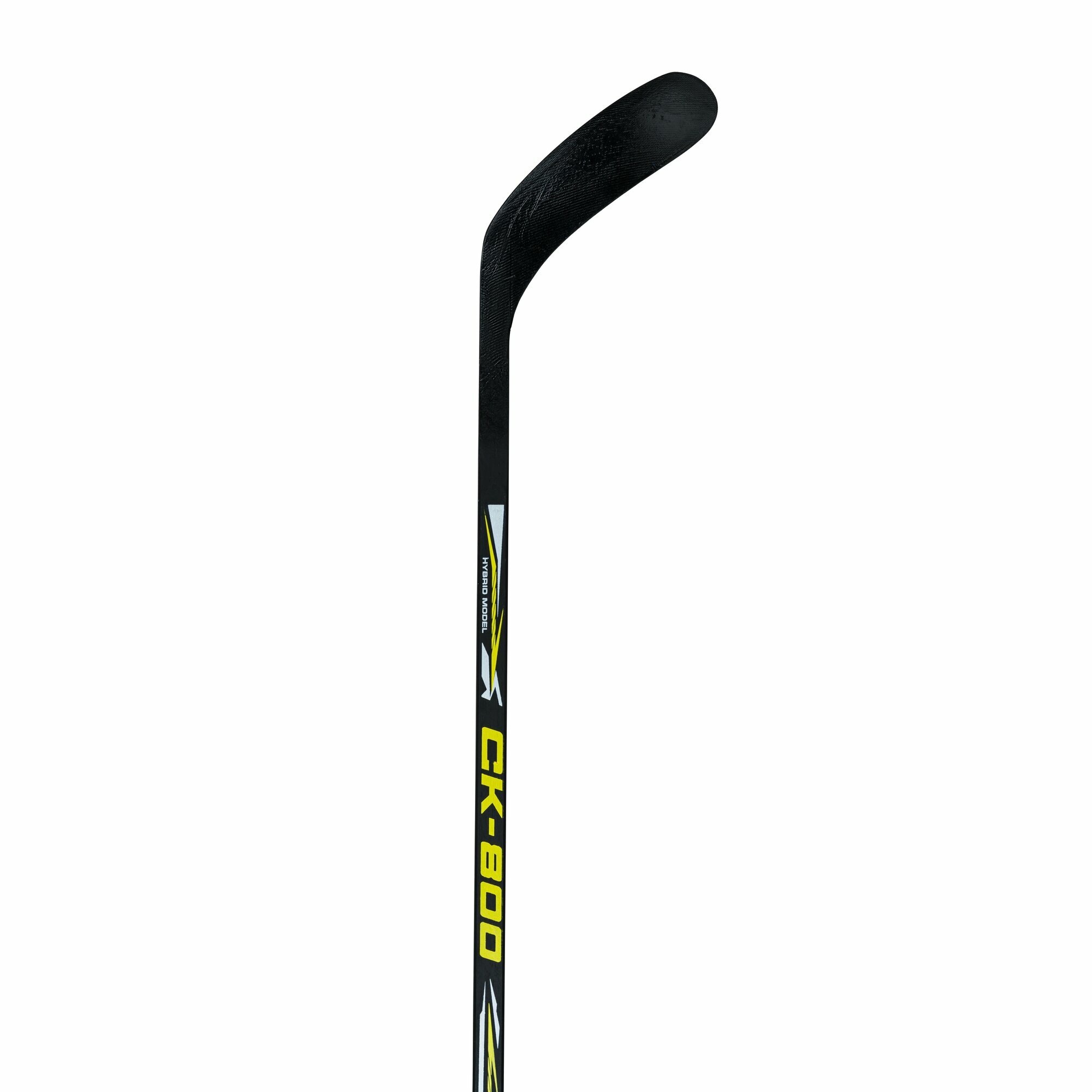 Клюшка юниорская хоккейная CK-800 Ручка: многослойный шпон твердолиственных пород. Крюк: АВS - пластик, армированный стеклотканью. Жёсткость средняя. Загиб стандартный. Полная длина клюшки: 153 см. Длина от рукоятки до крюка: 136 см. Хват: R (правый) на правую сторону / на правую руку / загиб к.