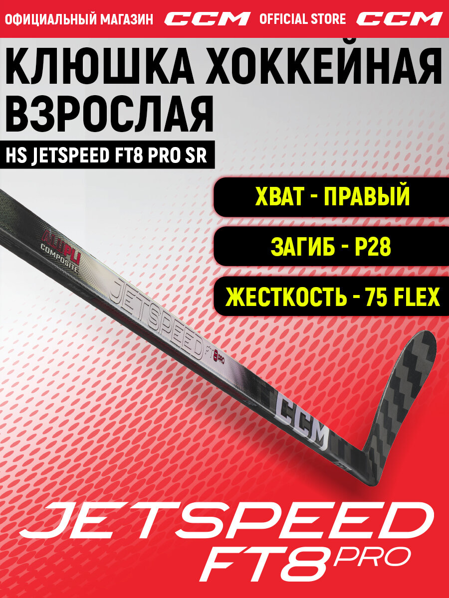 Клюшка хоккейная композитная CCM HS JETSPEED FT8 PRO SR, загиб 28R, взрослая, правый хват, жесткость 75: сравнение цен, характеристики, фото, актуальное наличие и цены.