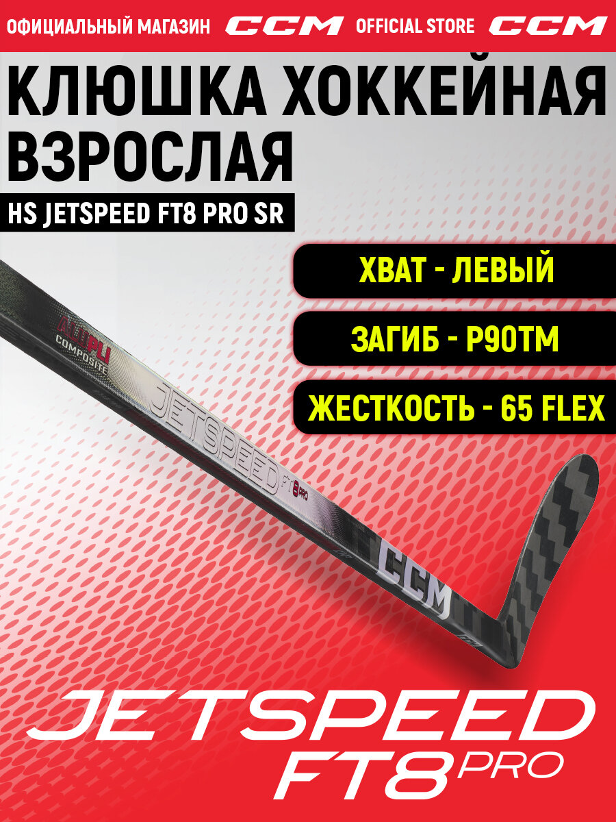 Купить Клюшка хоккейная композитная CCM HS JETSPEED FT8 PRO SR, загиб 90TM L, взрослая, левый хват, жесткость 65 с доставкой по всей России.