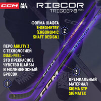 Купить Клюшка хоккейная композитная CCM HS RIBCOR TRIGGER 8 PRO SR, загиб 29L, взрослая, левый хват, жесткость 85 с доставкой по всей России.