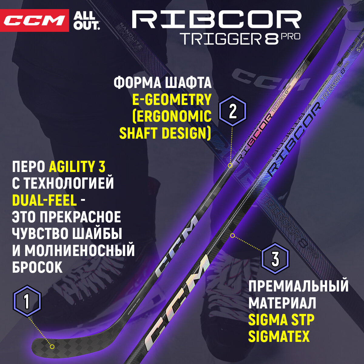 Клюшка хоккейная композитная CCM HS RIBCOR TRIGGER 8 PRO SR, загиб 29L, взрослая, левый хват, жесткость 85: сравнение цен, характеристики, фото, актуальное наличие и цены.