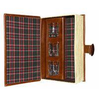 Оригинальное изделие, выполненное в виде книги. Материал верха - натуральная или искусственная кожа. Комплектуется тремя стеклянными рюмками. Подходит для любой стандартной бутылки водки объёмом до 0,5 литра. Поставляется в картонной транспортной коробке.