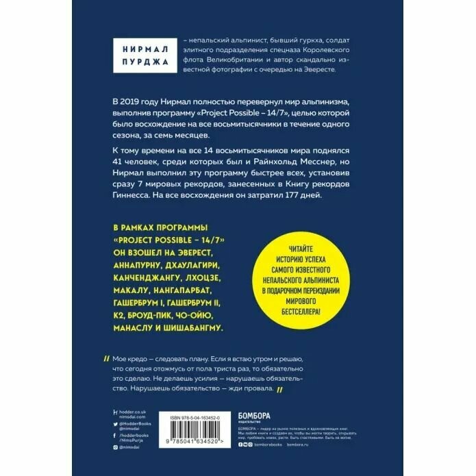 Купить Книга Бомбора За гранью возможного. Как непальский альпинист покорил 14 главных вершин мира. Подарочное издание, Пурджа Н, 320 стр, 2022 г. с доставкой по всей России.