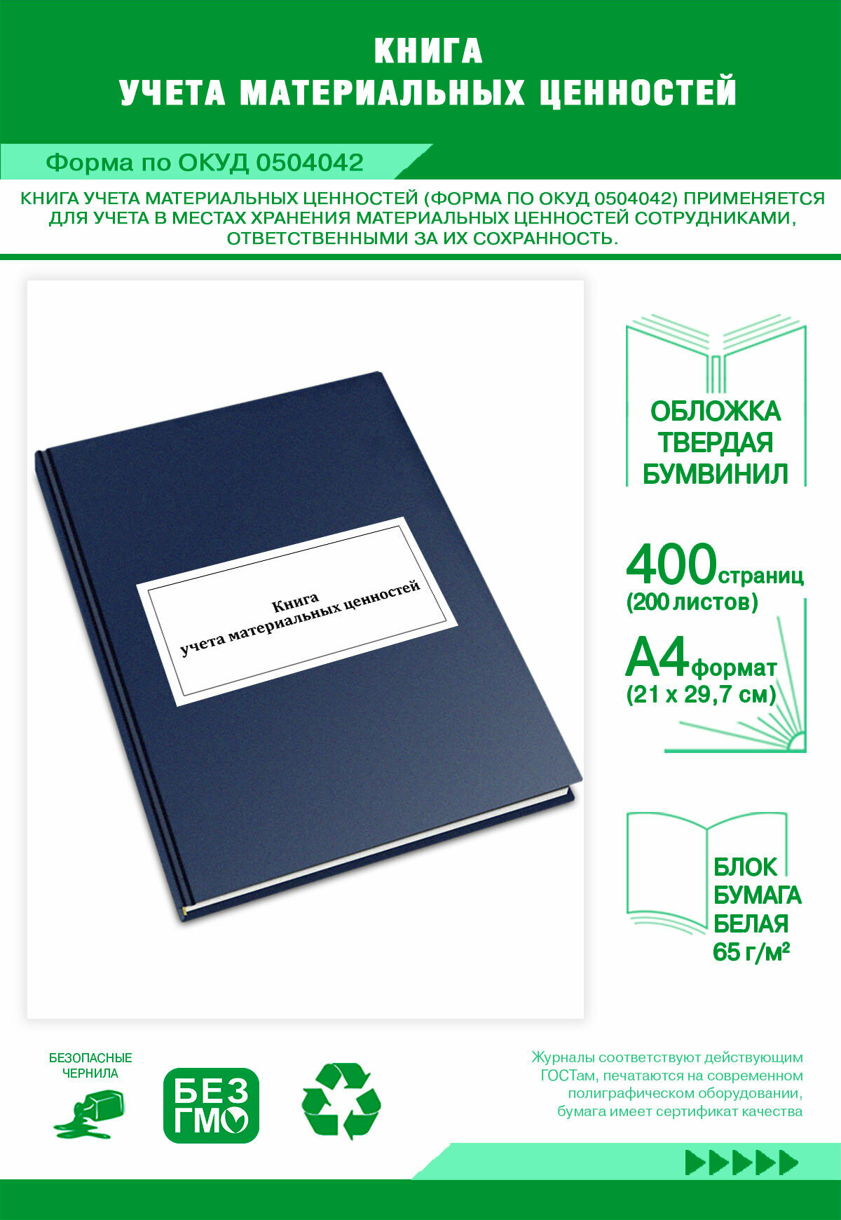 Купить Книга учета материальных ценностей (Форма по окуд 0504042) 400 страниц Твердый с доставкой по всей России.