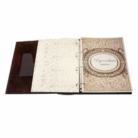 Внутри: 50 листов(10 страниц) с металлическим кольцевым креплением. Отсек для DVD диска на внутренней стороне переплета.