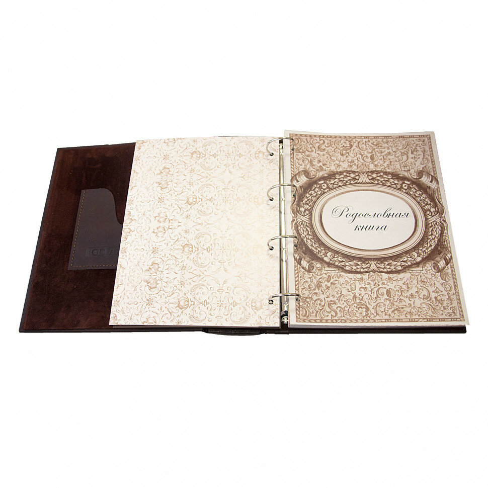 Превосходный сувенирный экземпляр Родословной книги ручной работы от белорусского бренда "Макей". Станет достойным подарком и дополнит вашу домашнюю коллекцию. Переплет выполнен из высококачественной натуральной кожи с художественной фотопечатью и тиснением золотой фольгой.