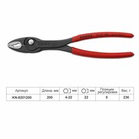 Клещи переставные KNIPEX TwinGrip с фронтальным и боковым захватами, зев 4-22 мм, 200 мм, обливные ручки KN-8201200: сравнение цен, характеристики, фото, актуальное наличие и цены.