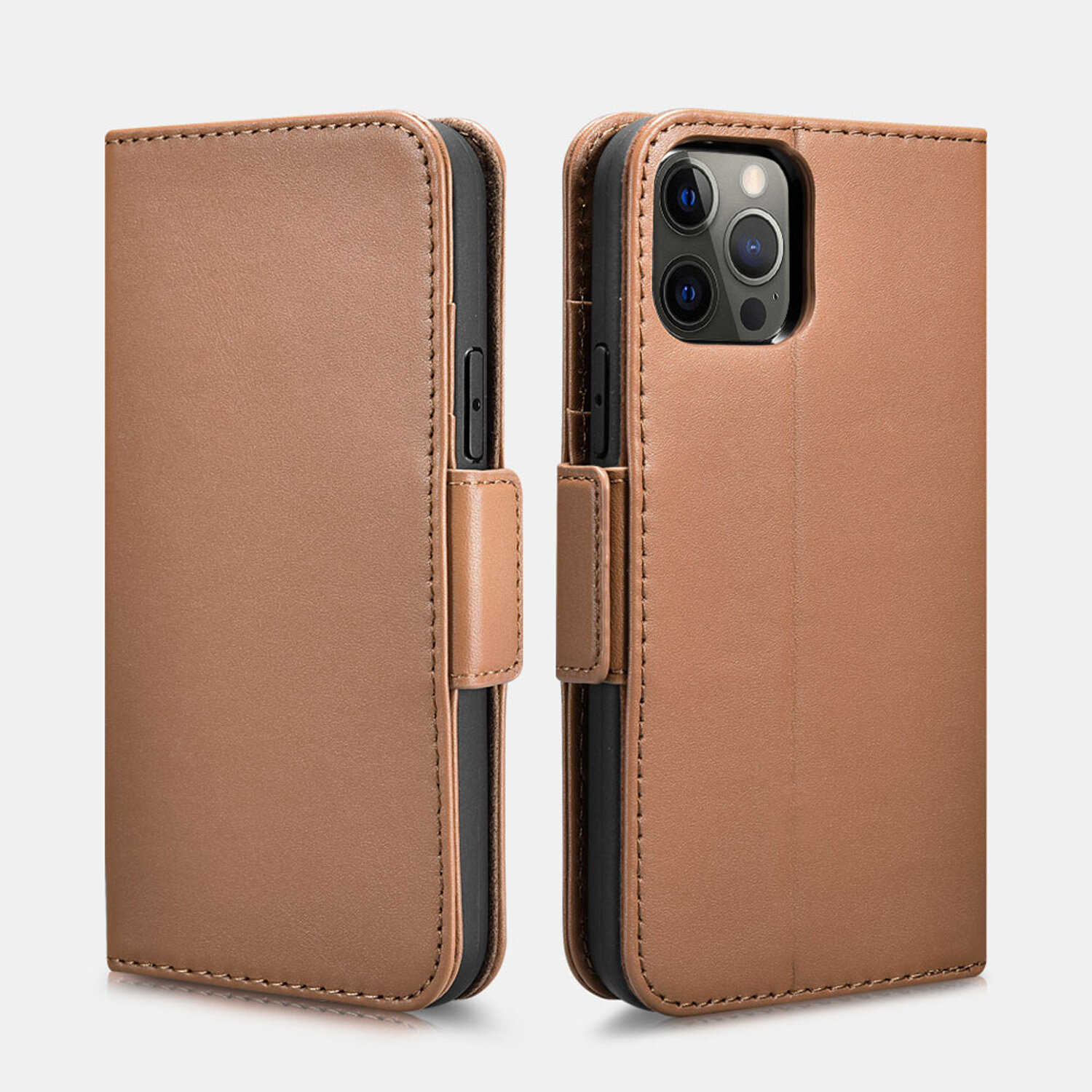Элегантный и многофункциональный чехол для iPhone 12/12 Pro из натуральной кожи Haixing Series от iCarer сочетает в себе стиль и практичность, обеспечивая надежную защиту смартфона от царапин, пыли и случайных падений.