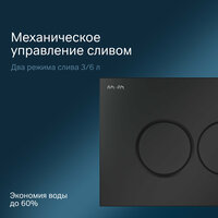 Кнопка оснащена двойным смывом на выбор: 3 и 6 литров. Механический принцип работы обеспечивает надежность и долговечность использования. Все крепления для установки кнопки входят в комплект.