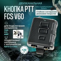Кнопка PTT V 60 от известного производителя Falco Communications System. Используется для подключения Активных тактических стрелковых наушников FMA FCS AMP, а также наушников других производителей с коннектором интерфейса NATO U-174/u (военная "military" распайка проводов) к одной или двум радиостанциям.