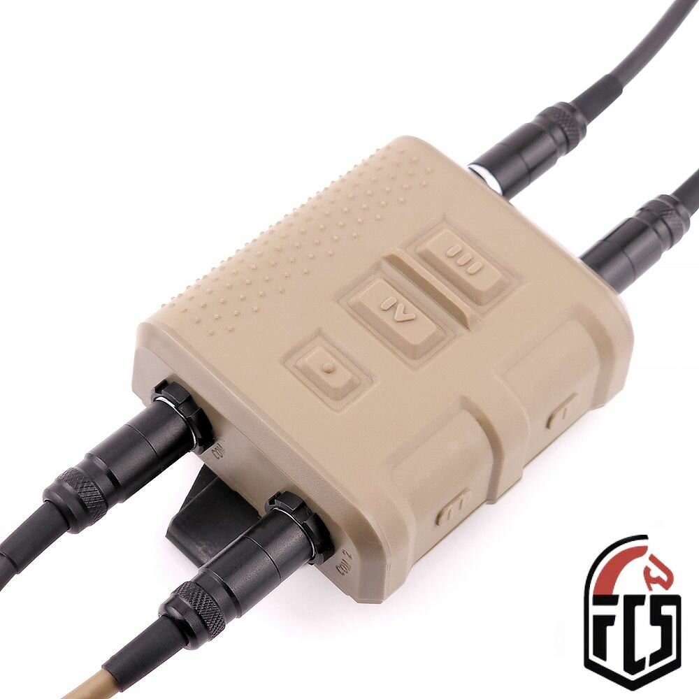 Кнопка PTT V 60 от известного производителя Falco Communications System. Используется для подключения Активных тактических стрелковых наушников FMA FCS AMP, а также наушников других производителей с коннектором интерфейса NATO U-174/u (военная "military" распайка проводов) к одной или двум радиостанциям.