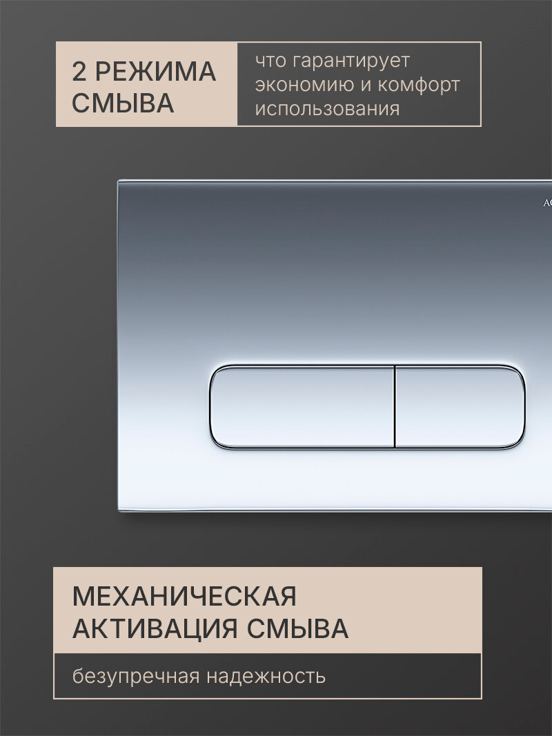 Хромированный глянец придает кнопке смыва элегантный и современный вид, который будет гармонично сочетаться с любым интерьером ванной комнаты. Прямоугольные клавиши обеспечивают удобство и простоту использования.