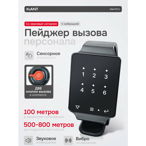 Часы вызова официанта Kiant PV-2 используются в кафе, ресторанах и любого общепита для приглашения персонала клиентом. Система вызова очень удобна на летних площадках, в банях и саунах с обслуживанием. Также применим в любых других сферах, где посетителю требуется привлечь внимание сотрудника.