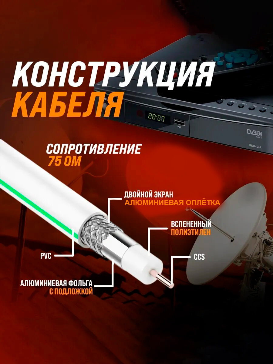 | Дополнительная информация | Уличный телевизионный кабель 50 м медный внешний коаксиальный наружный антенный провод для спутниковой тарелки, цифрового тв 50 метров 001-222004/50 - 1 шт |