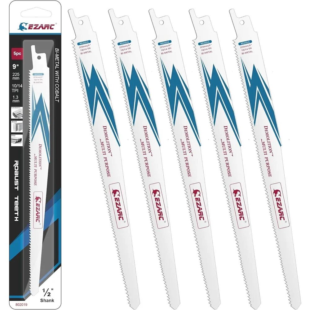Купить Кобальтовые полотна по древесине с гвоздями, металлу и дереву 225 мм, 10/14TPI, 5 шт для сабельной пилы Ezarc 802019 с доставкой по всей России.