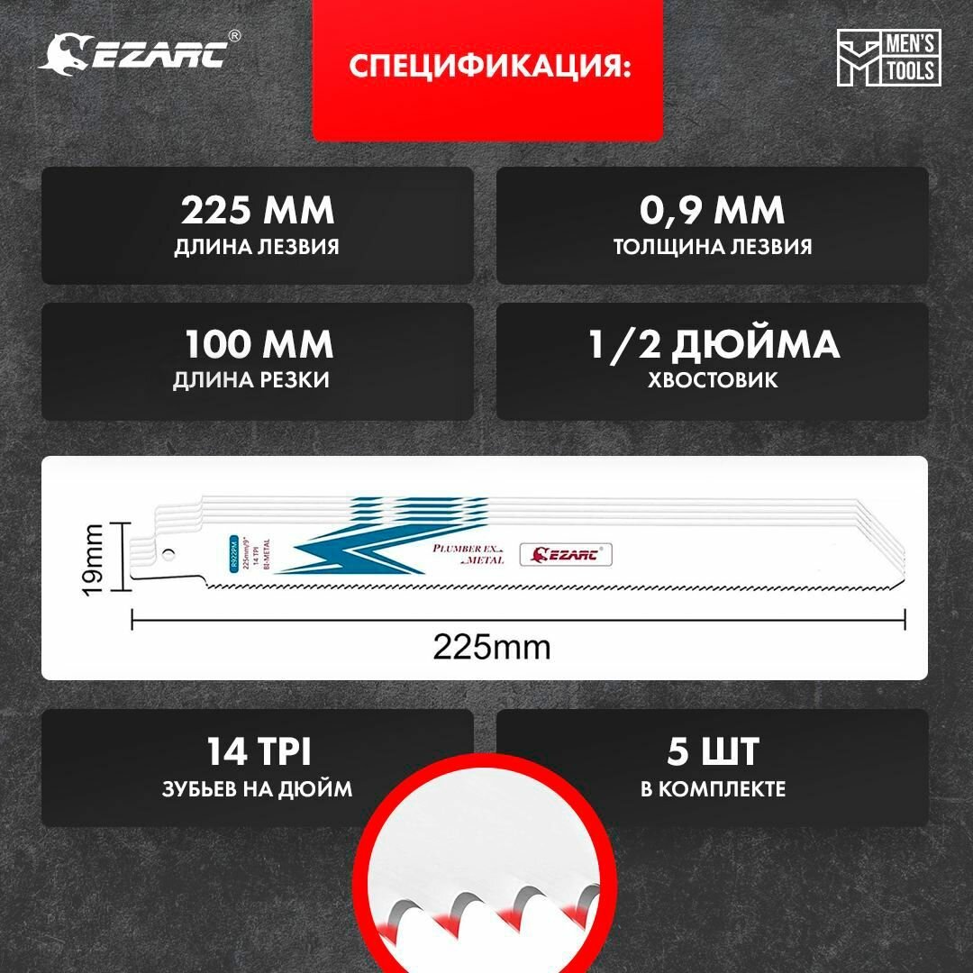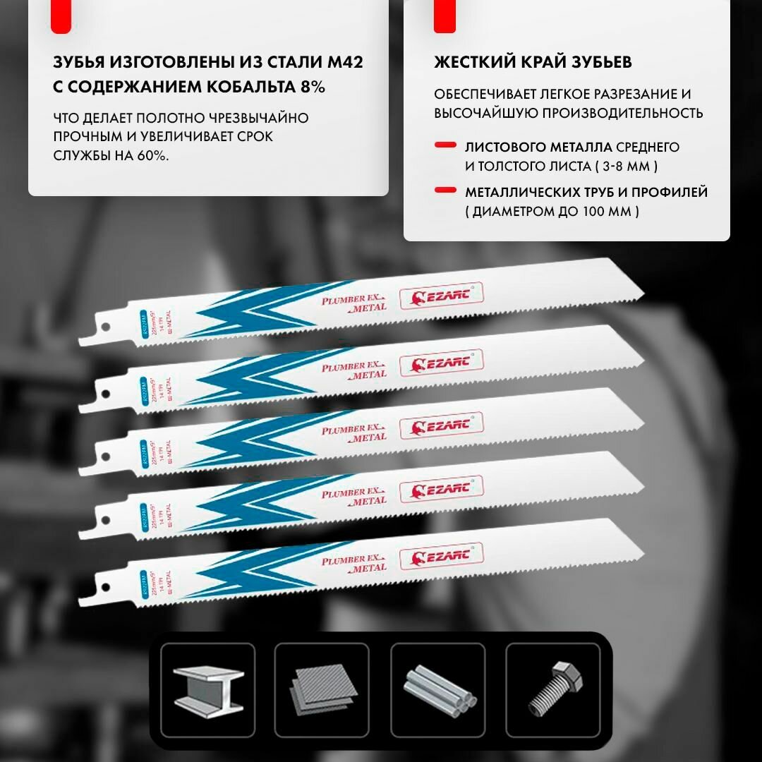 Купить Кобальтовые полотна по металлу 14TPI 225мм EZARC для сабельной пилы 5шт с доставкой по всей России. Кобальтовые полотна по металлу 14TPI 225мм EZARC для сабельной пилы 5шт: сравнение цен, характеристики, фото, актуальное наличие и цены.