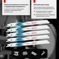 – Универсальность: возможность работы с различными типами материалов – Высокая прочность: благодаря содержанию кобальта полотно обладает повышенной устойчивостью к износу и коррозии – Эффективность: быстрый и точный рез благодаря специальной конструкции и материалу полотна – Простота использования: полотно легко устанавливается и заменяется на сабельной пиле, не требуя специальных навыков и инструментов – Доступная цена: приобретение одного или нескольких полотен станет экономичным решением для мастерской или домашнего хозяйства, обеспечивая высокую производительность при минимальных затратах.