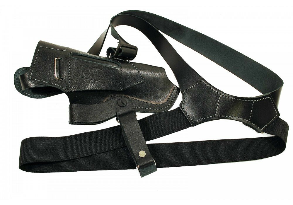Оперативная кобура - Colt 1911 портупея на резинке. Она нужна для удобного ношения пистолета Кольт 1911. Данная кобура российского производства относится к наплечным (или оперативным) и позволяет при переносе хранить оружие на плече под правую руку, пистолет располагается с левой стороны. Особенно полезной кобура оказывается при ношении пистолета с футболкой и пиджаком. Благодаря особенностям конструкции такую кобуру вместе с Кольтом можно регулировать под разные телосложения. Так же кобуру можно использовать для ношения на брючном ремне на поясе. Изделие имеет качественный пошив и прослужит хороший долгий срок своему владельцу.