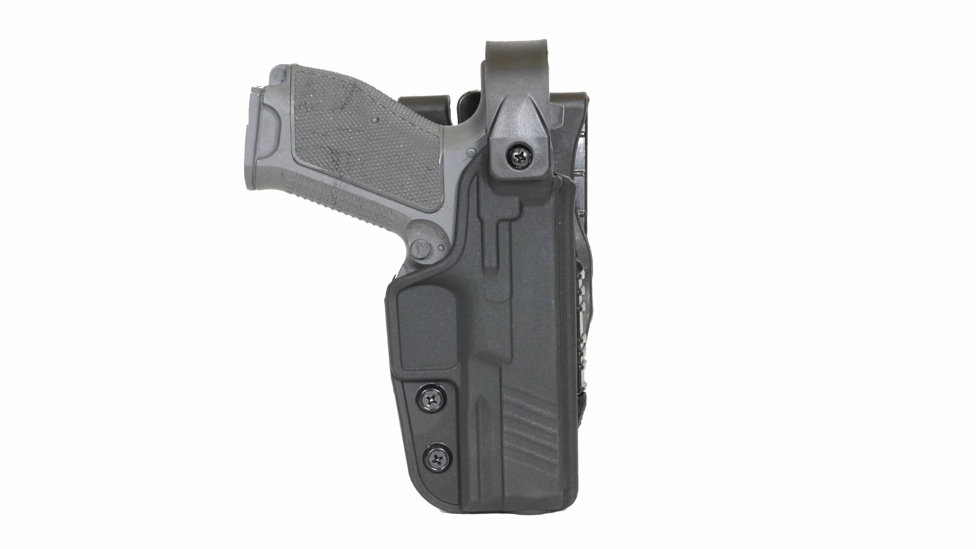- Регулировка степени удержания: Индивидуальная настройка усилия удержания пистолета с помощью регулировочных винтов, обеспечивающая оптимальный баланс между надежностью фиксации и скоростью извлечения.