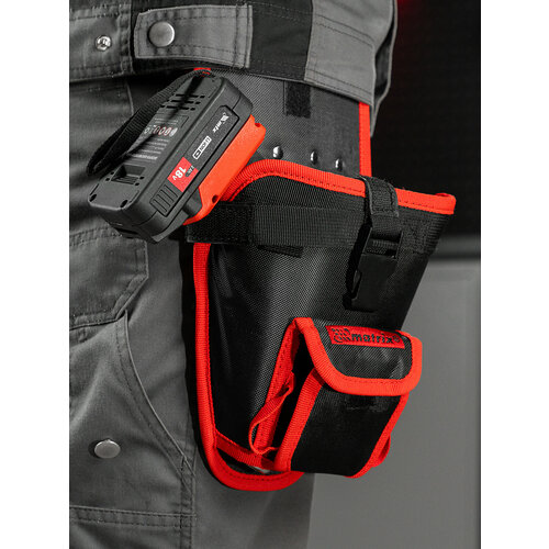 Кобура для шуруповерта с карманом для бит и сверл Matrix 90243 пригодится для выполнения различных работ. Ее можно закрепить на поясе, и инструмент будет под рукой даже во время работы на высоте. Для удобного размещения сверл и бит предусмотрен специальный отсек.